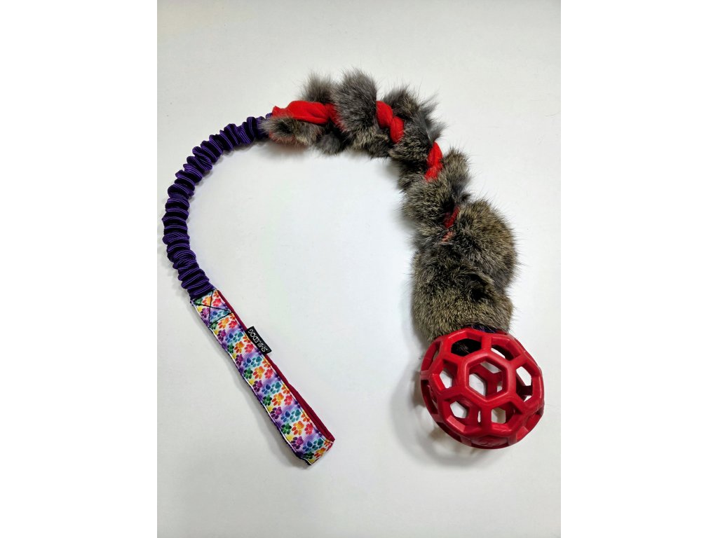 Přetahovadlo je vyrobeno z pravé králičí kožešiny. Velikost králičí části cca 30cm, amortizer cca 25cm, rukojeť je podšitá softshellem.