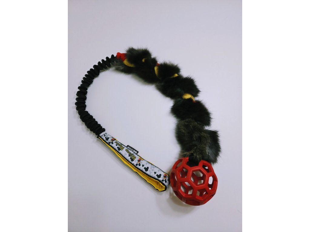 Přetahovadlo je vyrobeno z pravé králičí kožešiny. Velikost králičí části cca 30cm, amortizer cca 25cm, rukojeť je podšitá softshellem.