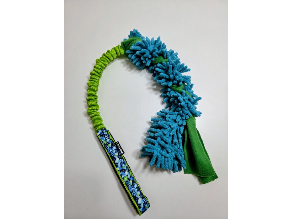 Přetahovadlo mop zapletený s fleecem. Velikost mopové části cca 40cm, amortizercca 25cm. Rukojeť je podšitá softshellem. V celé délce je popruh.
