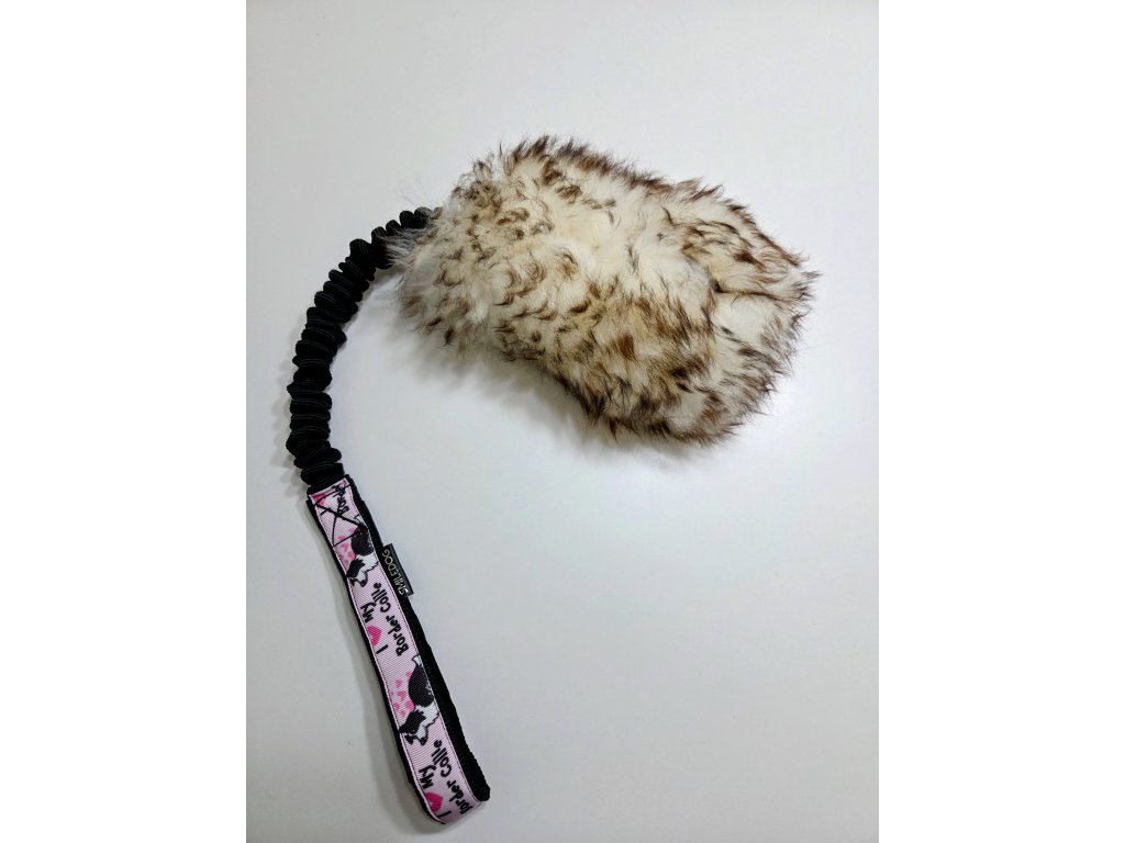 Přetahovadlo je vyrobeno z pravé ovčí kožešiny. Velikost ovečkové části cca 20x10cm. Délka amortizéru cca 25 cm, rukojeť je podšitá softshellem.