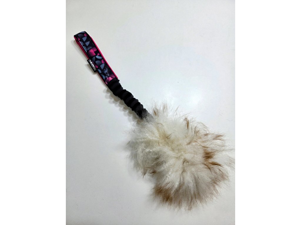 Přetahovadlo je vyrobeno z pravé ovčí kožešiny. Velikost ovečkové části cca 12x6cm. Délka amortizéru cca 12 cm, rukojeť je podšitá softshellem.