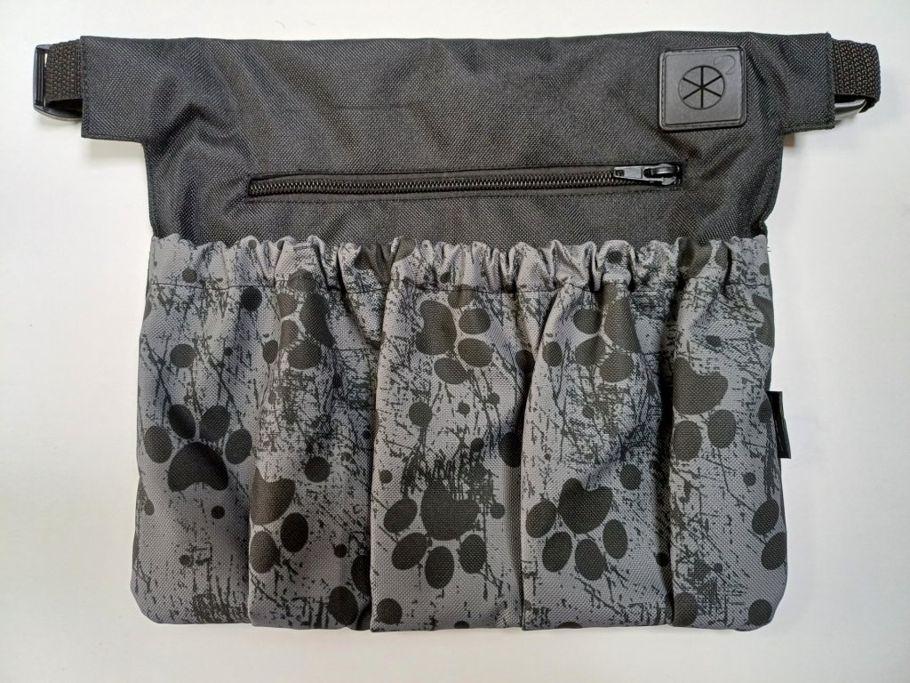 Pamlskovník nepromokavý z kočárkoviny. Kapsa na pamlsky podšitá kočárkovinou. Velikost 24x26cm. Přezka odolná proti mrazu. Otvor na pytlíky.