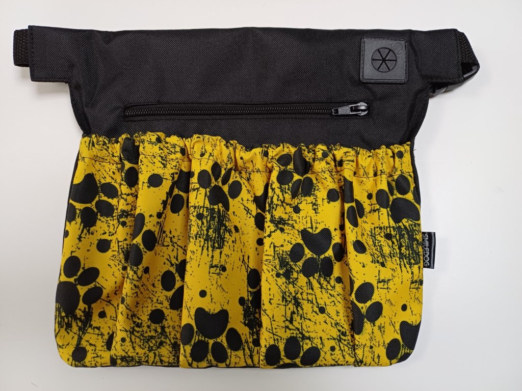 Pamlskovník nepromokavý z kočárkoviny. Kapsa na pamlsky podšitá kočárkovinou. Velikost 24x26cm. Přezka odolná proti mrazu. Otvor na pytlíky.