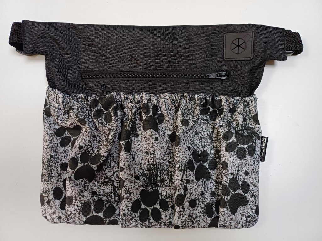 Pamlskovník nepromokavý z kočárkoviny. Kapsa na pamlsky podšitá kočárkovinou. Velikost 24x26cm. Přezka odolná proti mrazu. Otvor na pytlíky.