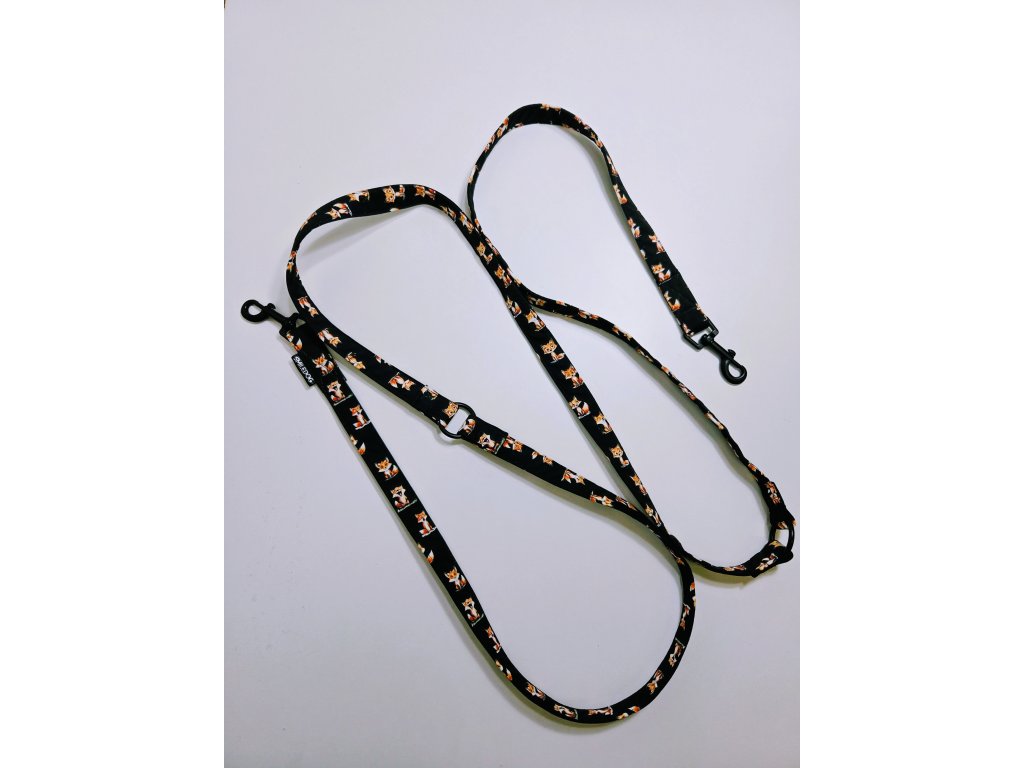 Přepínací vodítko 2,5m, šířka vodítka 2cm. Ze softshellu, uvnitř popruh. Karabina 6,1mm.