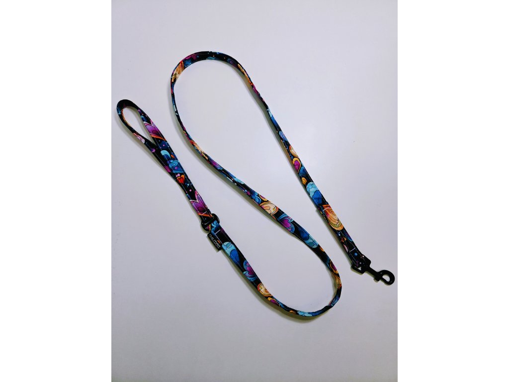 Vodítko 1,5m, šířka vodítka 1,5cm. Ze softshellu, uvnitř popruh. Karabina 6,1mm.