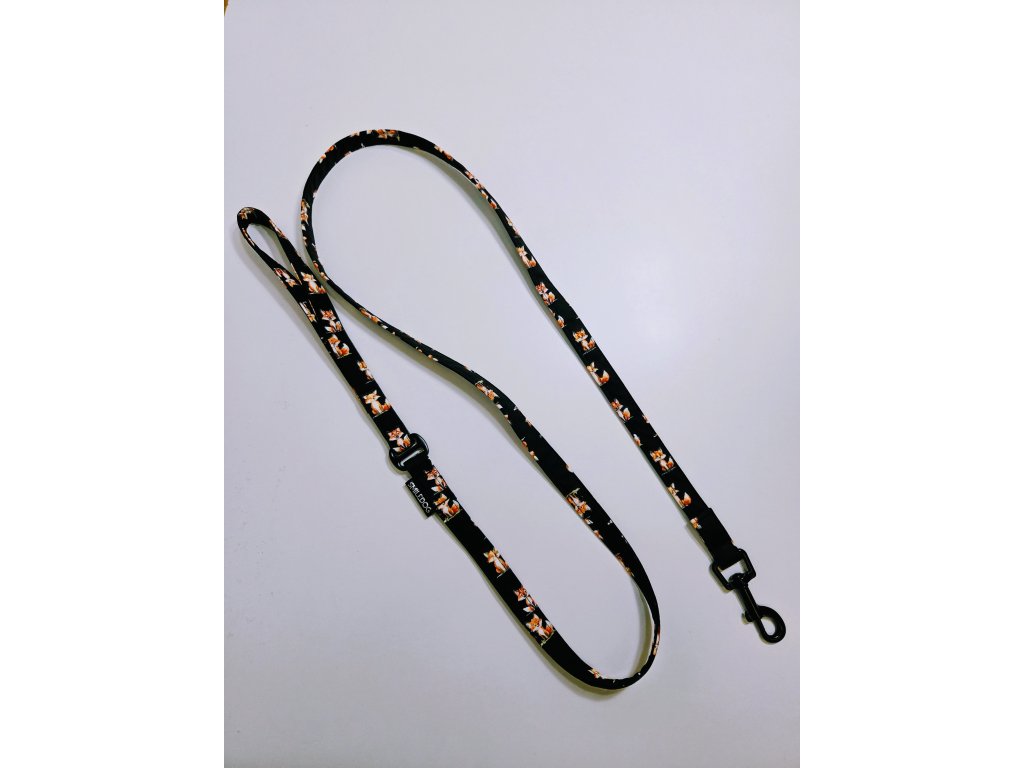 Vodítko 1,5m, šířka vodítka 1,5cm. Ze softshellu, uvnitř popruh. Karabina 6,1mm.