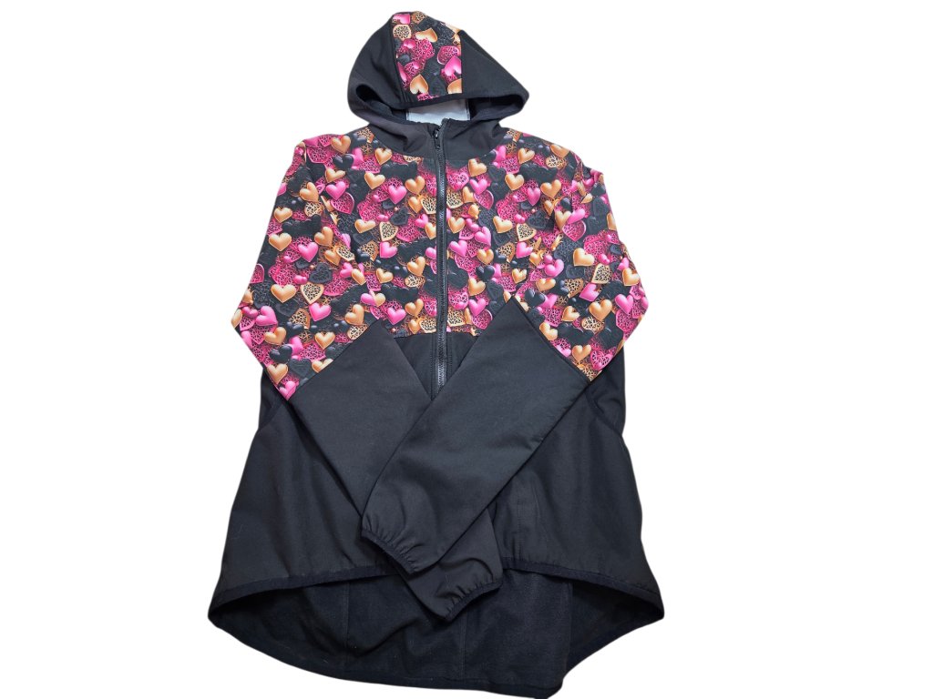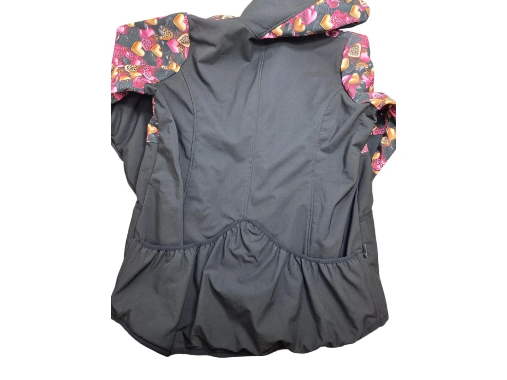 Obvod hrudníku 125cm, obvod pasu 112cm, obvod boků 134cm, délka rukávu 68cm. Velké kapsy na pamlsky a hračky. Bunda je ze softshellu.