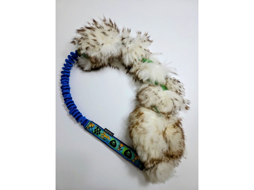 Přetahovadlo je vyrobeno z pravé ovčí kožešiny. Velikost ovečkové části cca 60cm, amortizer cca 25cm, rukojeť je podšitá softshellem.