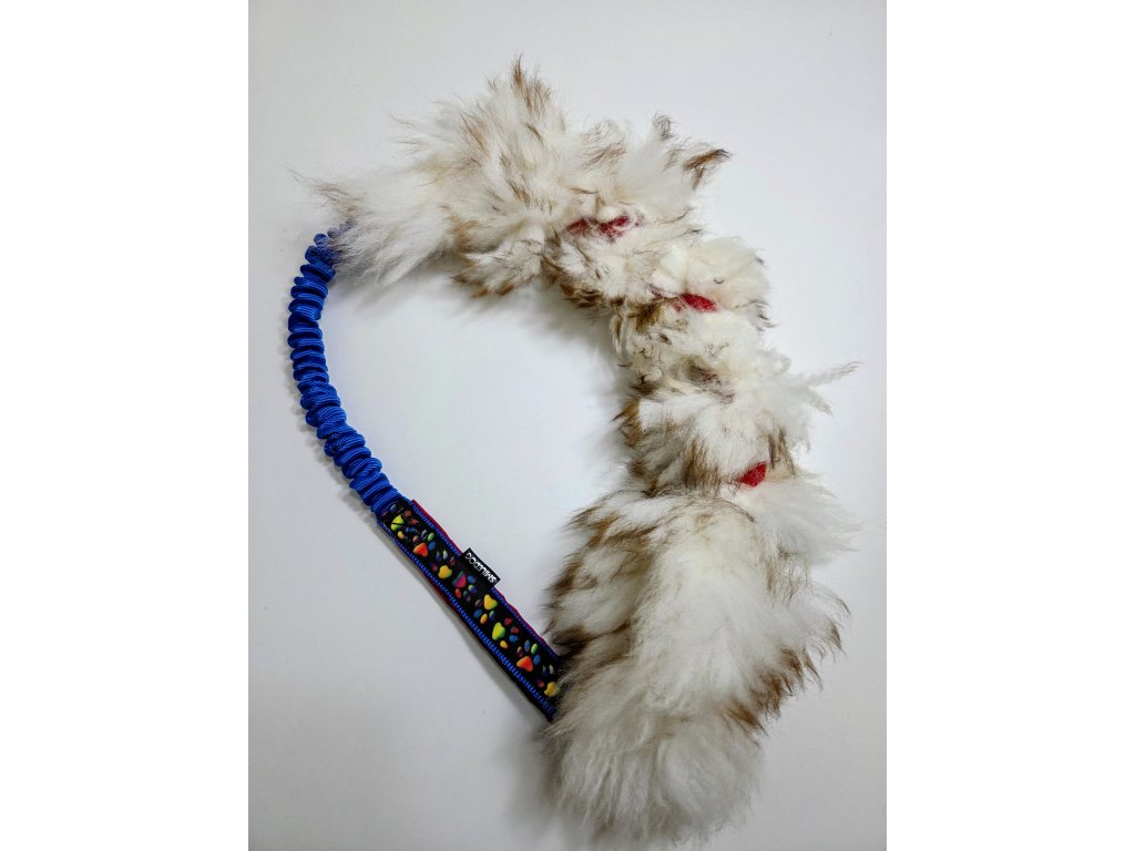 Přetahovadlo je vyrobeno z pravé ovčí kožešiny. Velikost ovečkové části cca 60cm, amortizer cca 25cm, rukojeť je podšitá softshellem.