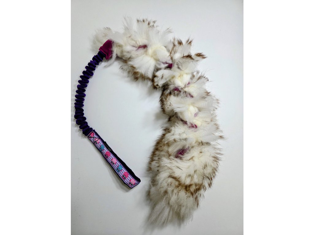 Přetahovadlo je vyrobeno z pravé ovčí kožešiny. Velikost králičí části cca 50-60cm, amortizer cca 25cm rukojeť je podšitá softshellem.