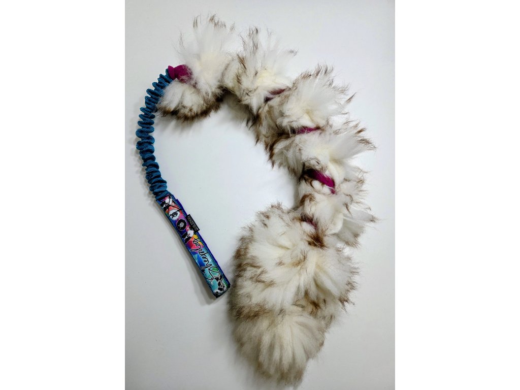 Přetahovadlo je vyrobeno z pravé ovčí kožešiny. Velikost králičí části cca 50-60cm, amortizer cca 25cm rukojeť je podšitá softshellem.
