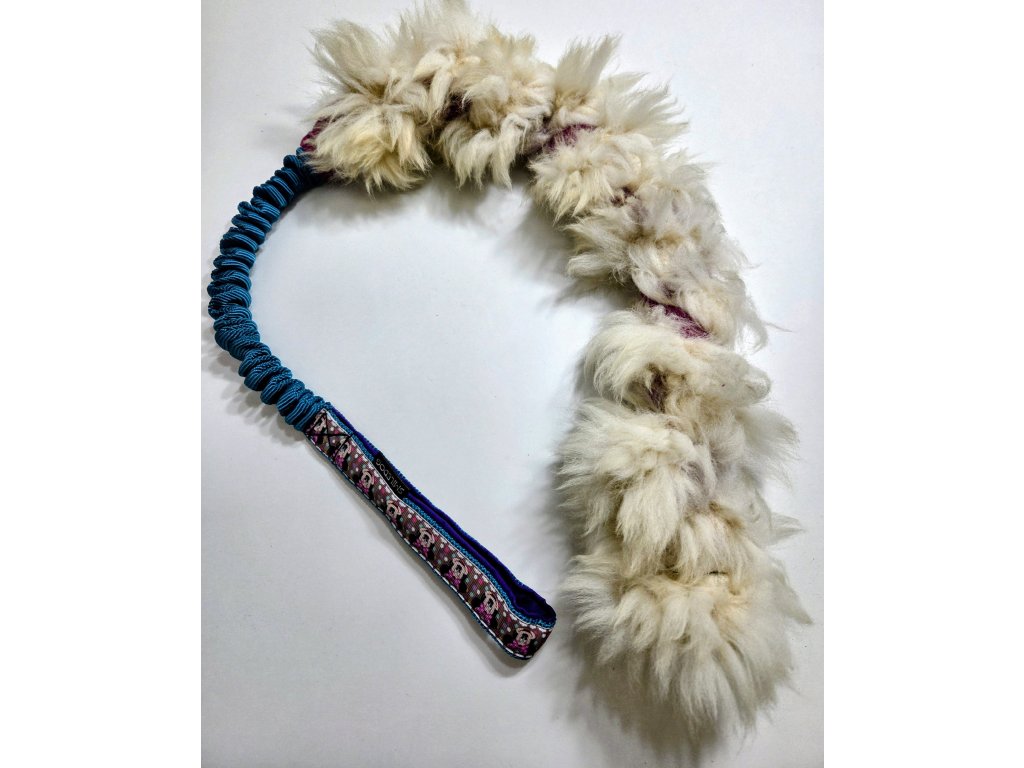 Přetahovadlo je vyrobeno z pravé ovčí kožešiny. Velikost ovečkové části cca 60cm, amortizer cca 25cm, rukojeť je podšitá softshellem.