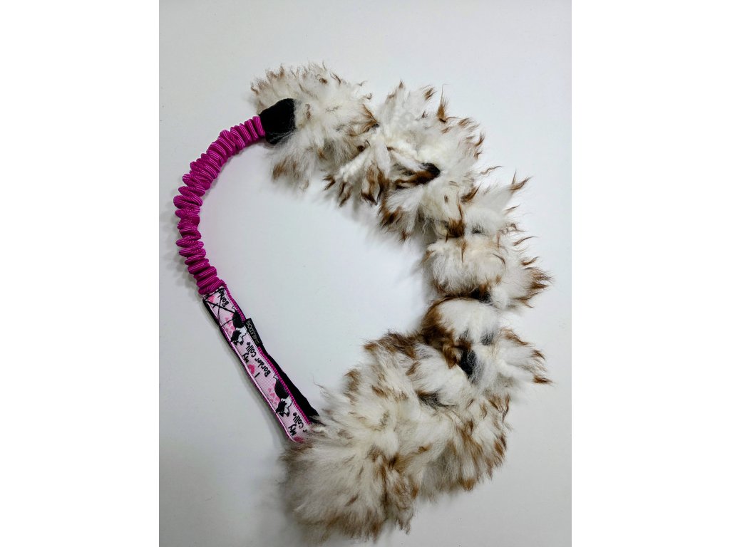 Přetahovadlo je vyrobeno z pravé ovčí kožešiny. Velikost králičí části cca 50-60cm, amortizer cca 25cm rukojeť je podšitá softshellem.
