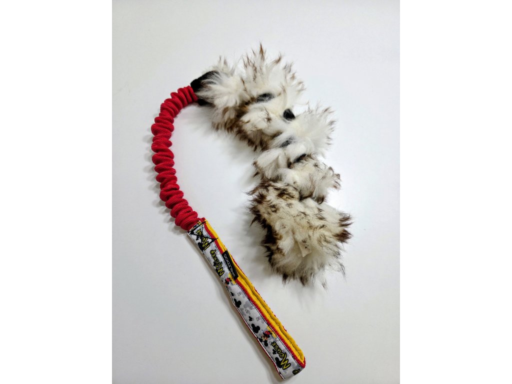 Přetahovadlo je vyrobeno z pravé ovčí kožešiny. Velikost ovčí části cca 25-30cm, amortizer cca 25cm rukojeť je podšitá softshellem.
