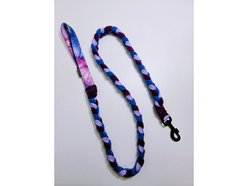 Zapletené vodítko s popruhem a fleecem. Šířka vodítka 2,5cm a délka 150cm. Karabina střední a velký pes 81mm.
