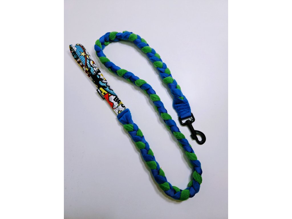 Zapletené vodítko s popruhem a fleecem. Šířka vodítka 2,5cm a délka 150cm. Karabina střední a velký pes 81mm.