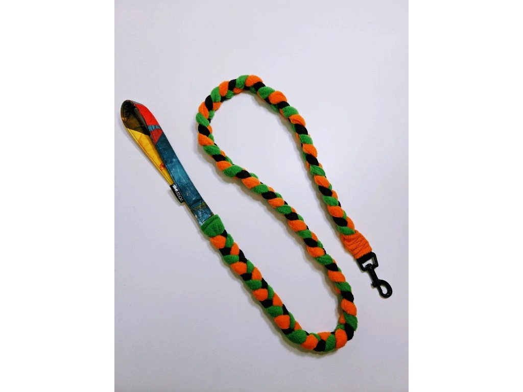 Zapletené vodítko s popruhem a fleecem. Šířka vodítka 2cm a délka 150cm. Karabina střední a velký pes 61mm.