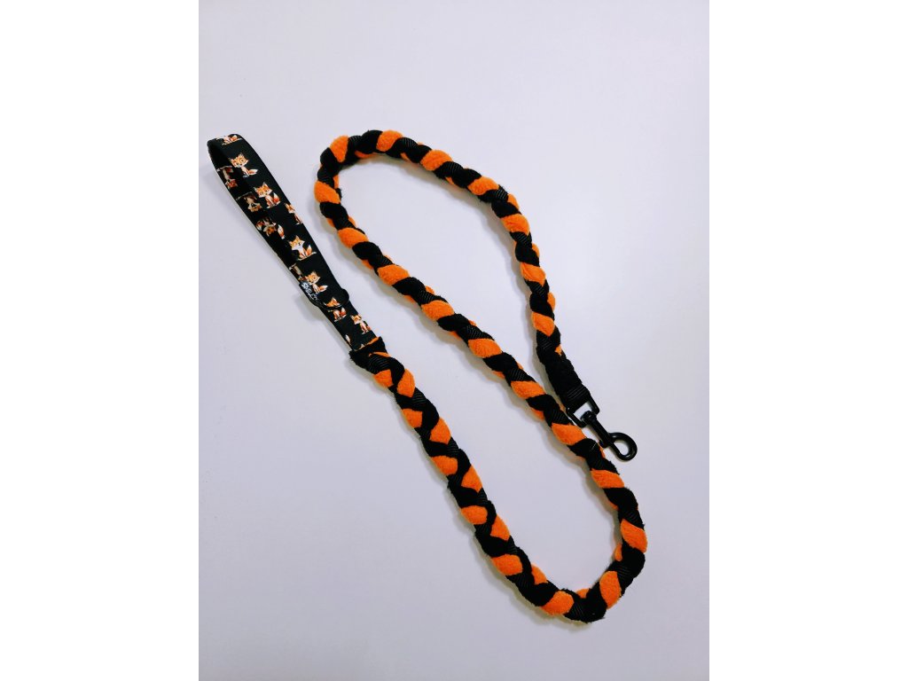 Zapletené vodítko s popruhem a fleecem. Šířka vodítka 2cm a délka 150cm. Karabina střední a velký pes 61mm.