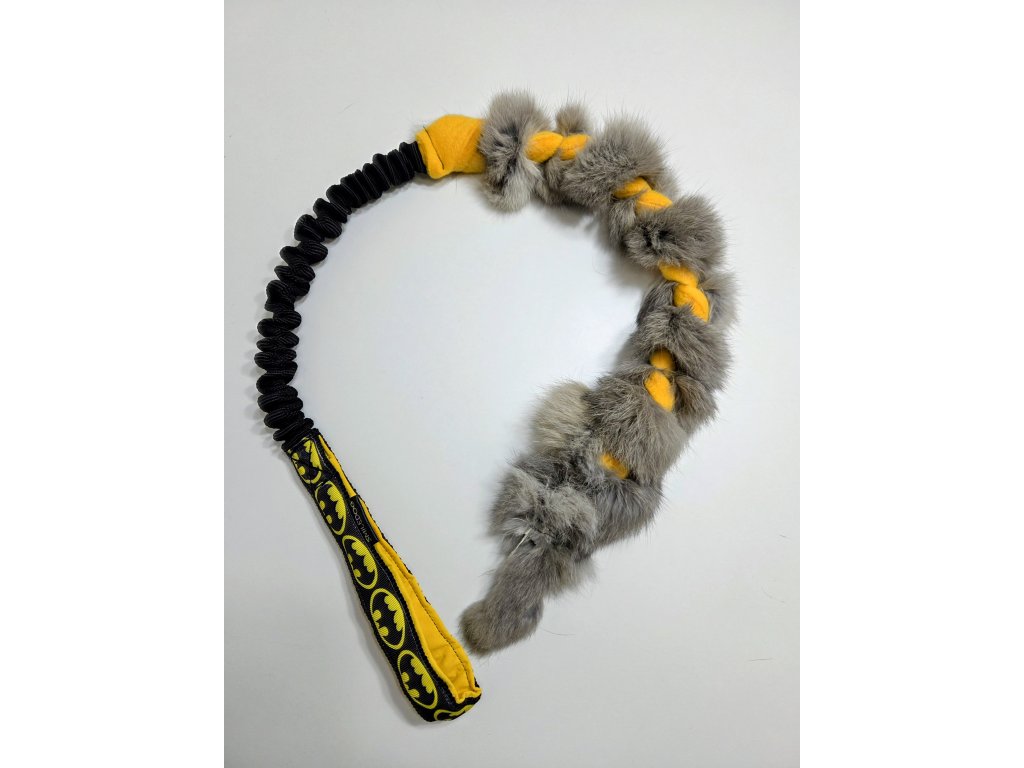 Přetahovadlo je vyrobeno z pravé králičí kožešiny. Velikost králičí části cca 45-50cm, amortizer cca 25cm rukojeť je podšitá softshellem.
