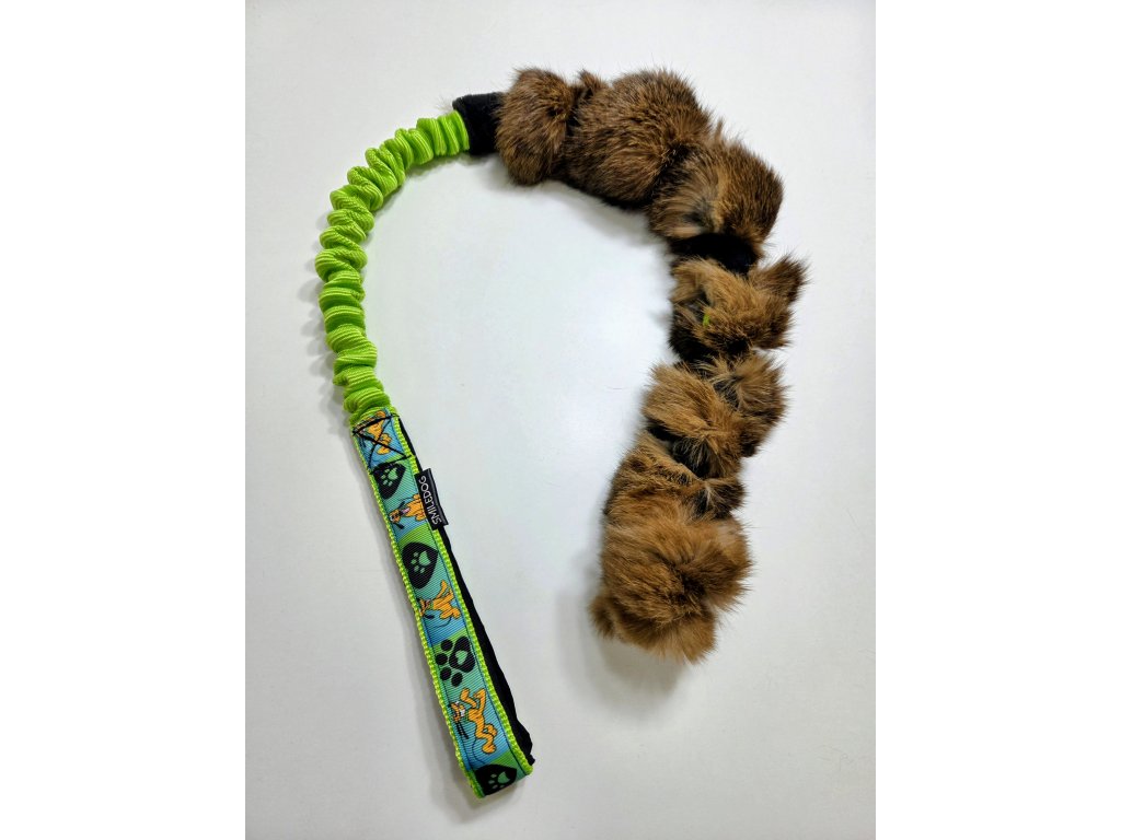 Přetahovadlo je vyrobeno z pravé králičí kožešiny. Velikost králičí části cca 45-50cm, amortizer cca 25cm rukojeť je podšitá softshellem.