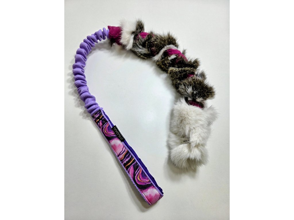 Přetahovadlo je vyrobeno z pravé králičí kožešiny. Velikost králičí části cca 45-50cm, amortizer cca 25cm rukojeť je podšitá softshellem.