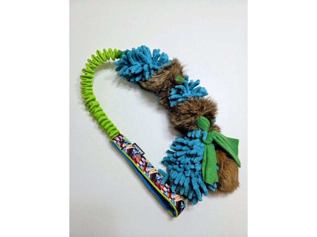 Přetahovadlo je vyrobeno z pravé králičí kožešiny a mopu. Velikost králičí části cca 35- 40cm, amortizer cca 25cm rukojeť je podšitá softshellem.