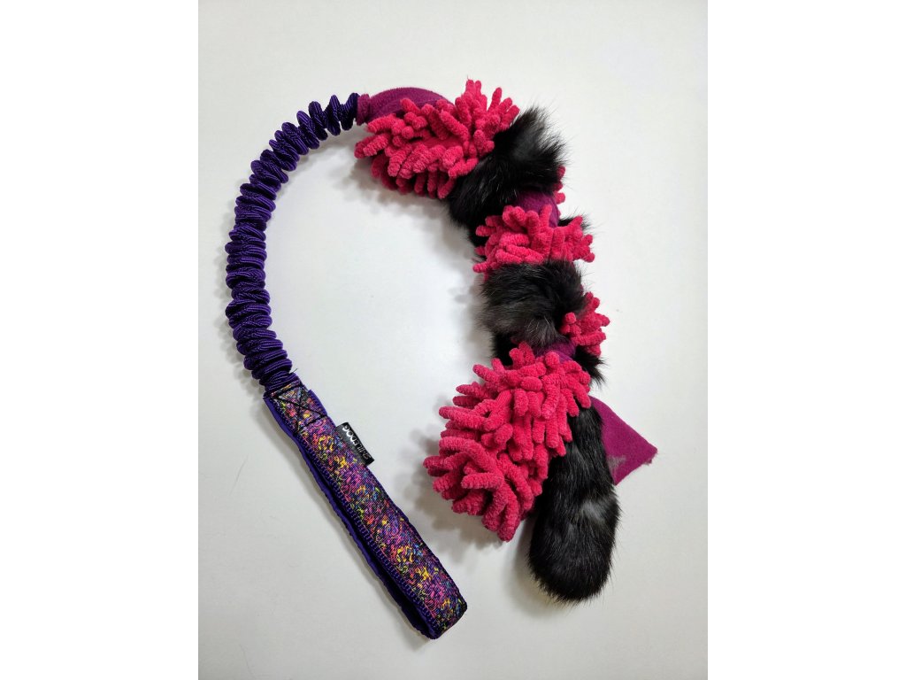 Přetahovadlo je vyrobeno z pravé králičí kožešiny a mopu. Velikost králičí části cca 35- 40cm, amortizer cca 25cm rukojeť je podšitá softshellem.